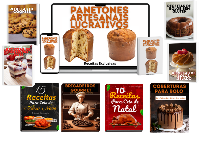 Nosso guia trás + de 70 Receitas de Panetones e Chocotones, aprenda os segredos que as Confeiteiras usam para criar delícias irresistíveis e aprenda combinações campeãs para se diferenciar e lucrar mais!